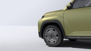Un paraurti più grande e grintoso avvolge i fari circolari con prese d’aria su entrambi i lati, mentre una massiccia skid plate evidenzia le prese d’aria attive al centro.